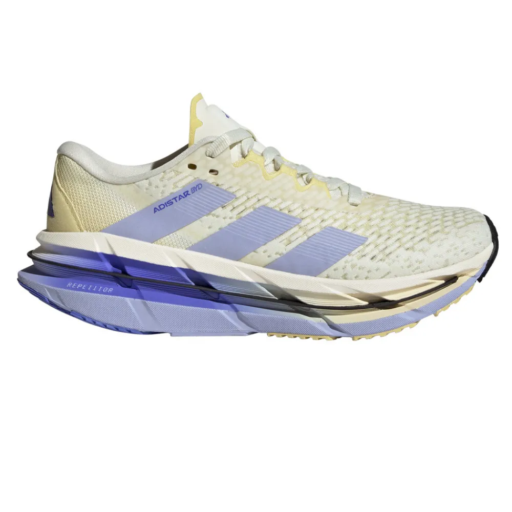 Cuando el día pide una carrera de distancia, responde con un ritmo rápido y constante en la Adistar BYD. Con una entresuela Repetitor 2 . 0 de doble densidad, estas zapatillas aportan una sensación enérgica a tus zancadas, a la vez que ayudan a acunar el talón para ofrecer una sujeción extra en las distancias largas.