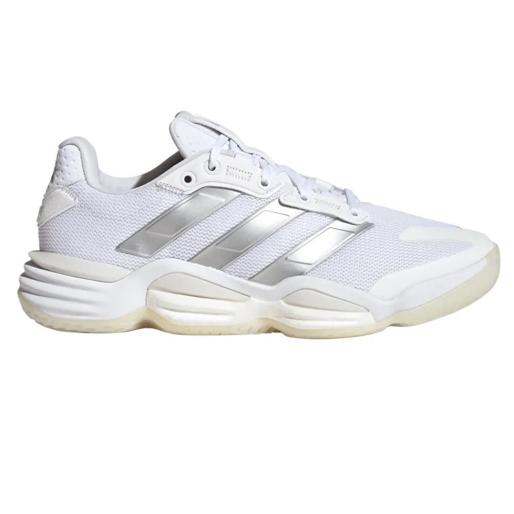 Parte superior y lengüeta de malla– Comodidad altamente transpirable.Forro textil – Suave y delicado con la piel.Ajuste con arnés y cordón tradicional– Fija el ajuste.Puntera reforzada – Protege los pies durante el juego agresivo.Entresuela BOOST – Absorbe los impactos, maximiza el retorno de energía y amortigua los pies.Construcción del chasis – Proporciona una base estable.Suela Adiwear que no deja huella– Adherente para una velocidad y agilidad reactivas. No daña la pista.Contiene al menos un 20% de material reciclado.