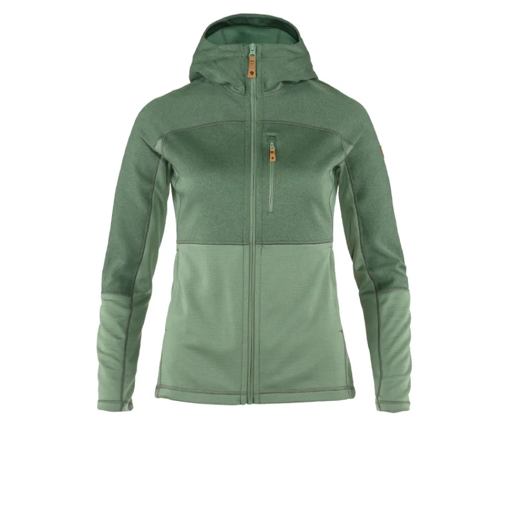 Un polar con capucha ligero y práctico que combina dos tejidos de forro polar diferentes para abrigar donde más se necesita y mantener un peso y volumen reducidos. La capucha, los hombros y el pecho están confeccionados en forro polar de poliéster de punto plano (parcialmente reciclado) con un suave cepillado interior, mientras que los laterales, la parte inferior del torso y la parte inferior de las mangas están confeccionados en un forro polar de estructura reticular más ligero con una ventilación superior. Perfecta como capa intermedia de secado rápido que absorbe la humedad en excursiones de un día o en las noches más frescas en verano. La chaqueta presenta un corte recto para una cómoda libertad de movimiento y una capucha ajustada para una mayor cobertura y protección. La abertura frontal con cremallera unidireccional permite una ventilación fácilmente ajustable, mientras que un bolsillo en el pecho y dos bolsillos para las manos, todos con cremallera, proporcionan un amplio espacio de almacenamiento seguro sobre la marcha.